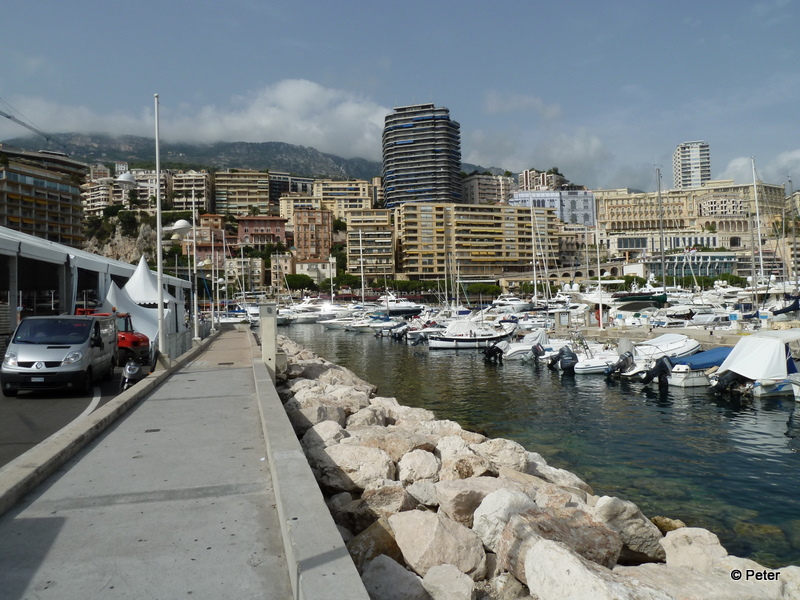 Ganz in der Nähe, mit Sicht auf die Mopeds, kehren wir in ein Lokal an der „Promenade“ ein, wo die Eispreise gesalzen, der Espresso aber moderat ist. Einig sind wir uns darüber, dass keiner von uns noch irgendetwas hier zu erledigen hätte, und so beschließen wir, den Kleinstaat wieder zu verlassen. Am Heimweg verschlägt es uns noch kurz durch den berühmten Tunnel, der beim Grand Prix durchfahren wird (in der Gegenrichtung allerdings, glaub ich. Was weiß ich, Formel 1 geht mir ziemlich am A… vorbei). Noch länger begleiten uns der Verkehr im Allgemeinen, und die bösen Rollerfahrer im Speziellen. Dafür endet der Spuk, wie er begonnen hat: Nur wenige Kilometer vom Hafen ist wieder Ruhe und Natur, und die Serpentinenstraßen beginnen wieder, sich über die bewaldeten Hänge zu winden.